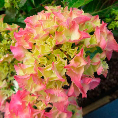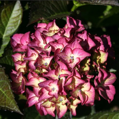 Цветы – уникальные, махровые, окраска в зависимости от кислотности почвы, на щелочной почве – светло- розовые, на кислой – фиолетово-розовые.