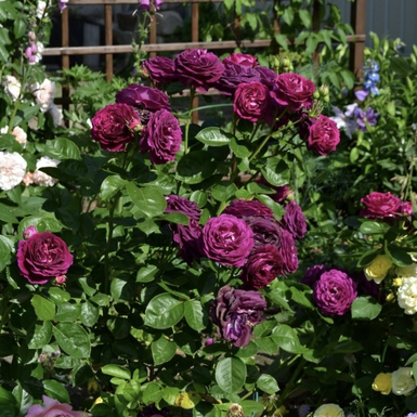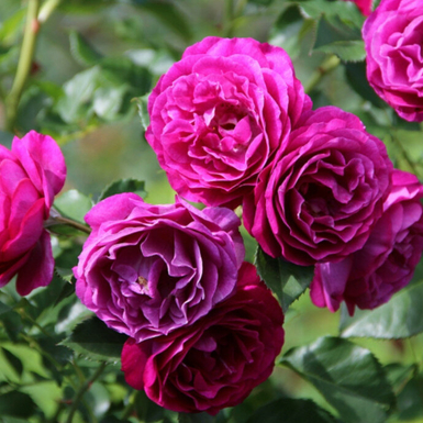 Роза в новом, «диком» стиле. Цветки по форме напоминают камелии. Это первая роза в сиреневых тонах, получившая награду AARS за последние 20 лет. Кисти пурпурно-красных полумахровых цветков с волнистыми лепестками. Благодаря ярко-зеленой листве, это настоя