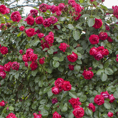 Сильный шраб или невысокая плетистая роза с густомахровыми цветками ностальгической формы. Цветки малиновые, в кистях по 3-5 шт. Аромат сильный, фруктовый. Куст ветвистый, прямостоячий, до 1,5м