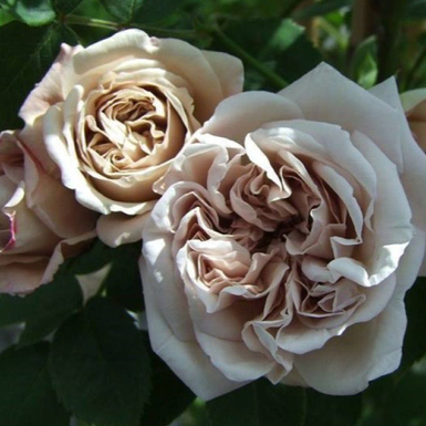 Цвет этой розы совершенно необычный. Кисти махровых цветков представляют собой смесь синевато-серого, пепельного и сиреневого с сливочно-коричневым румянцем. Цветки крупные, красивой формы, густомахровые, цветение однократное, очень обильное. Куст сильнор