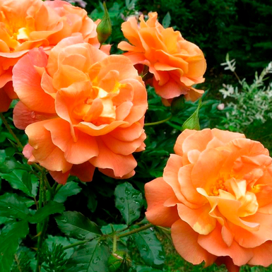 Быстро растущая, зимостойкая роза, которую можно использовать как кустовую либо плетистую. Цветки очень яркие, смесь оранжевого, розового, абрикосового, и золотого – цвет меняется в зависимости от погоды. На солнце цветки словно светятся изнутри.