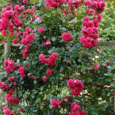 Обильноцветущая плетистая роза. Цветки сиренево-розовые, чашевидные, в кистях по 10-15 шт, очень душистые, со сладким ароматом. Куст ветвистый, хорошо разветвленный, до 1,8 м высотой. Листва средных размеров, густая, слегка блестящая.