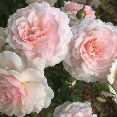 Цветок: нежно-розового цвета. Диаметр 7-8 см. Густомахровый, лепестки очень красиво сложены и напоминают воздушный шёлк. Цветение: цветки собраны в небольшие соцветия по 3-5 шт. Цветение обильное, на протяжении всего сезона.