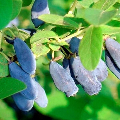 Ягоды веретеновидной или стручковидной формы, сдвоенные крупные (длина — 3-4 см, диаметр широкой части — до 1,5 см), весят 1,4–3 г, покрыты тонкой насыщенно-синей кожицей с восковым налетом