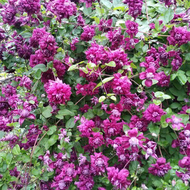 Относится к группе Viticella. Цветки махровые, пурпурно-красные, распускаются постепенно, некрупные, 6-9 см в диаметре.